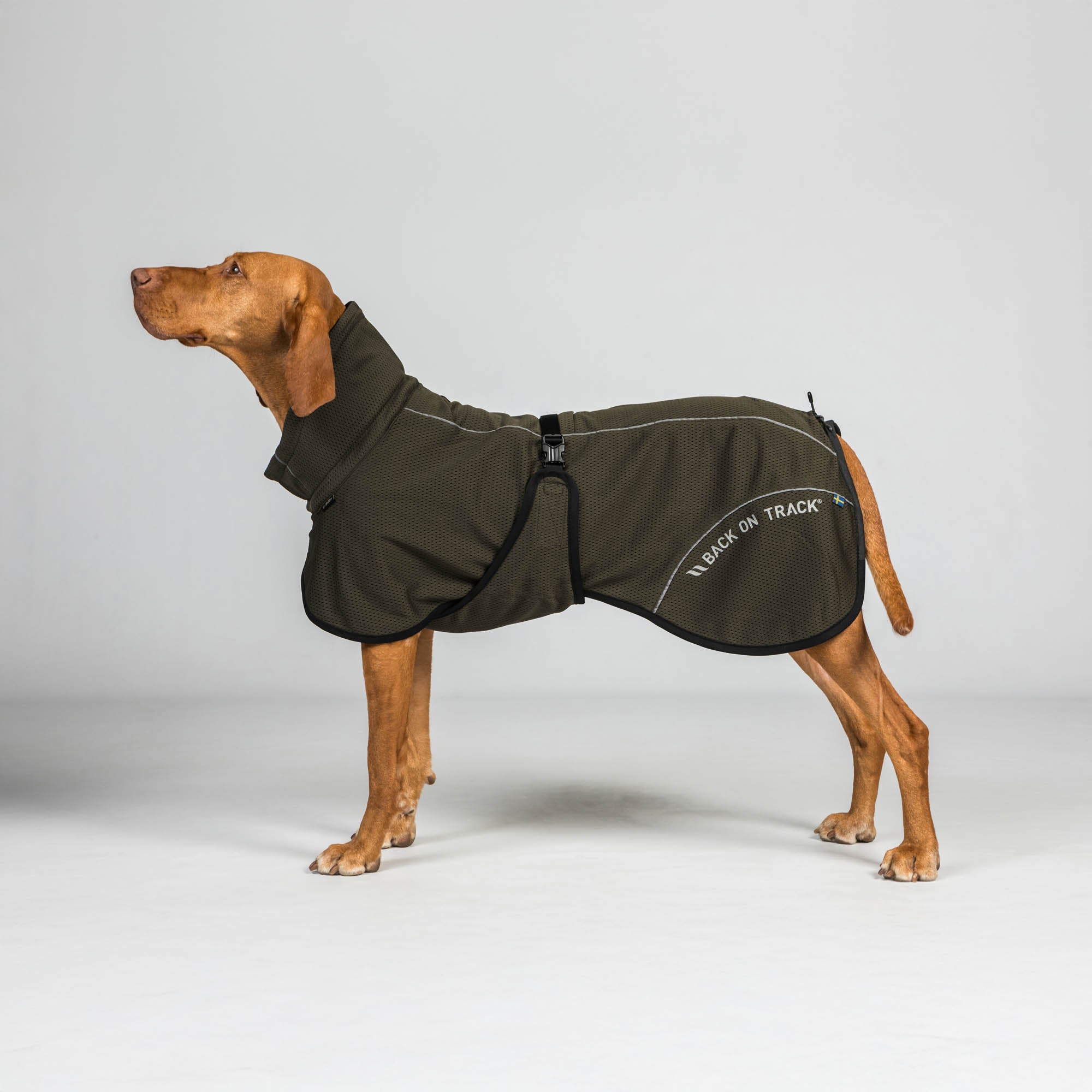 Inside, the coat features our proprietary Welltex® technology. Welltex® absorbs and emits far infrared (FIR) energy known to support circulation, helping keep muscles warm and flexible while aiding the body’s natural recovery processes. Especially popular for the competition and performance dog, while also being super popular for our aging senior dog population.